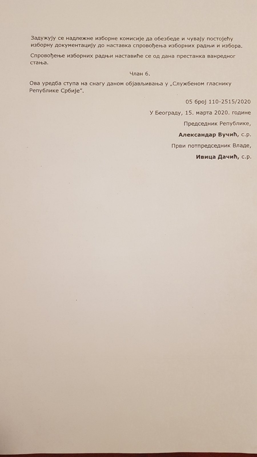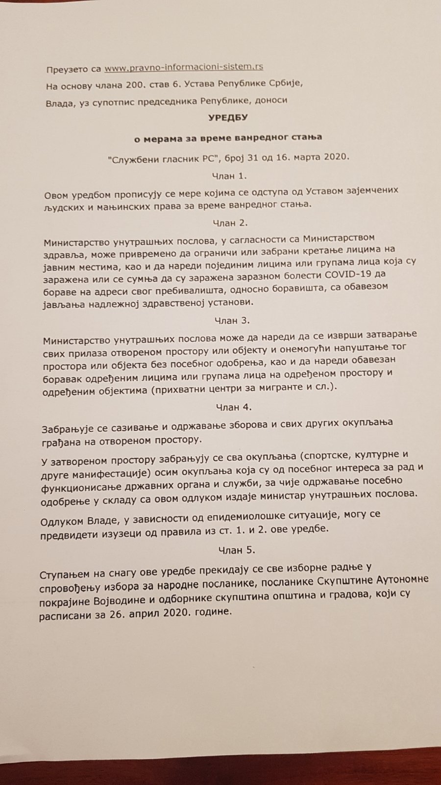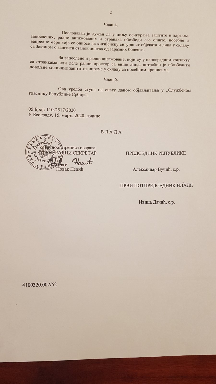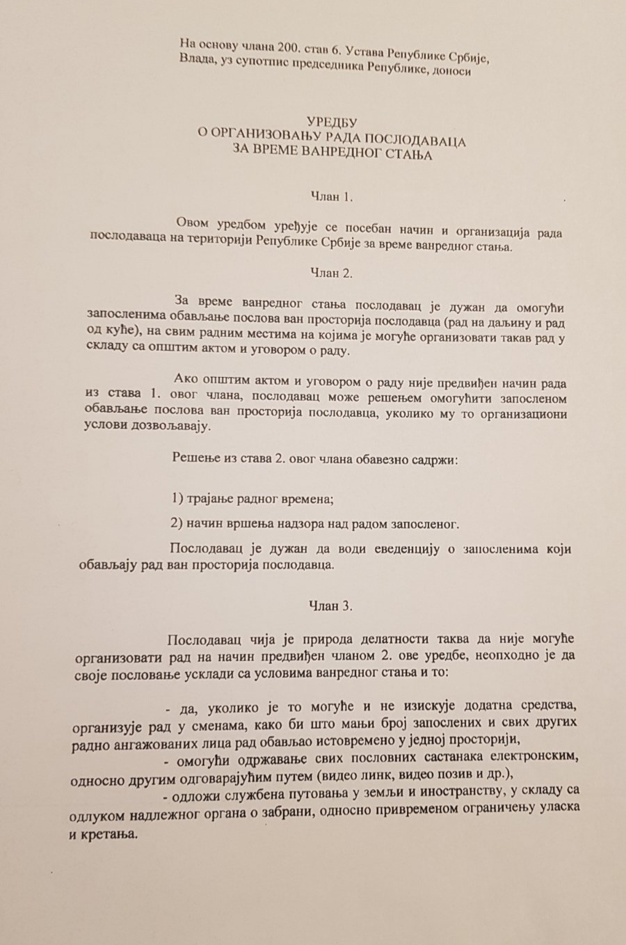 Uredba o organizovanju rada str.1