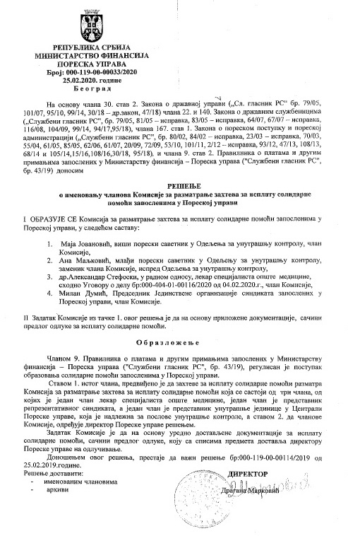 Rešenje o imenovanju članova komisije - preuzmi dokument (*.pdf)