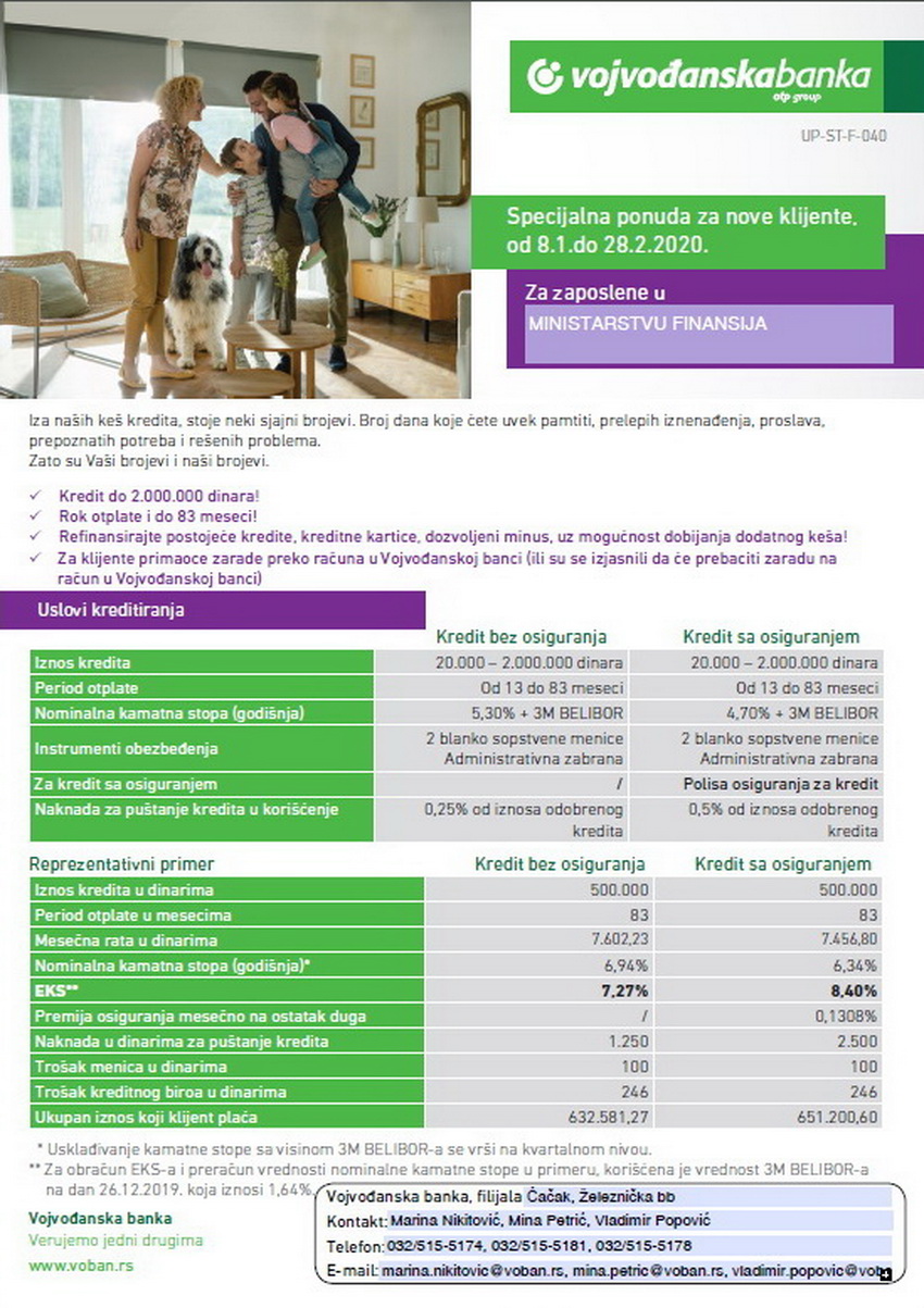 Ponuda Addiko banke za zaposlene u PURS (primer)