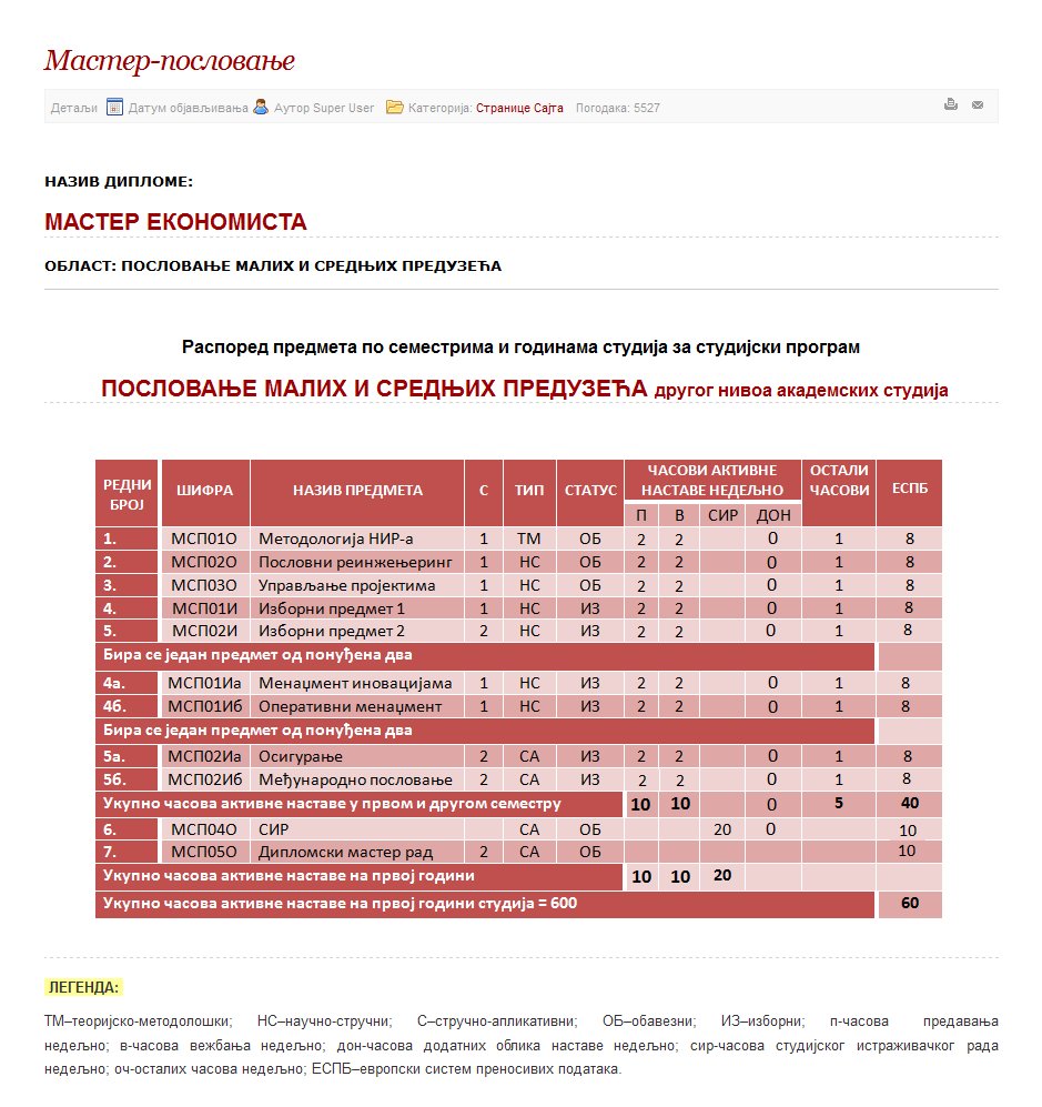 POSLOVANjE MALIH I SREDNjIH PREDUZEĆA - master akademske studije