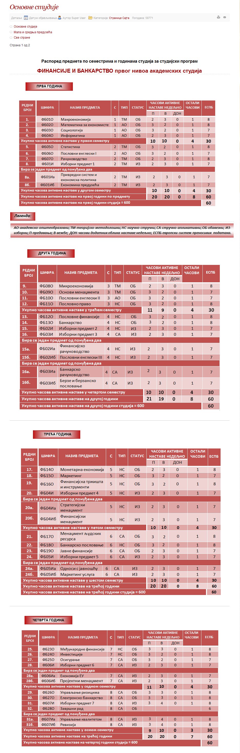 FINANSIJE I BANKARSTVO - osnovne akademske studije