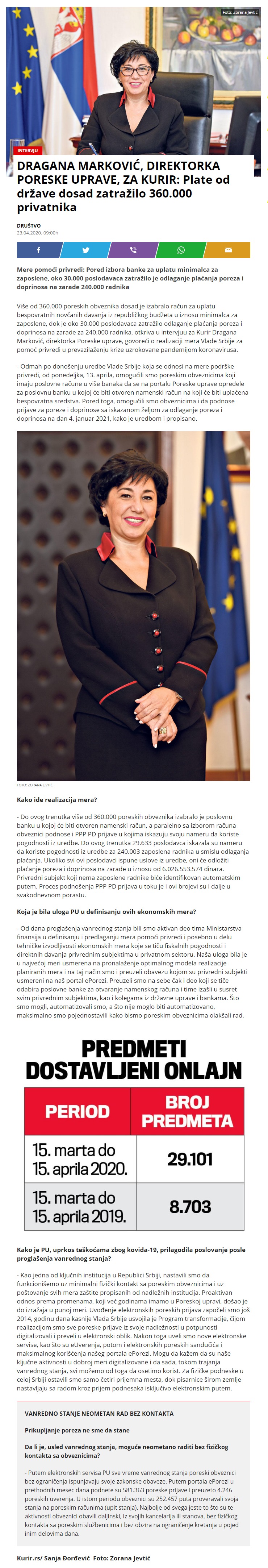 Intervju Dragane Marković, direktora Poreske uprave, za Kurir