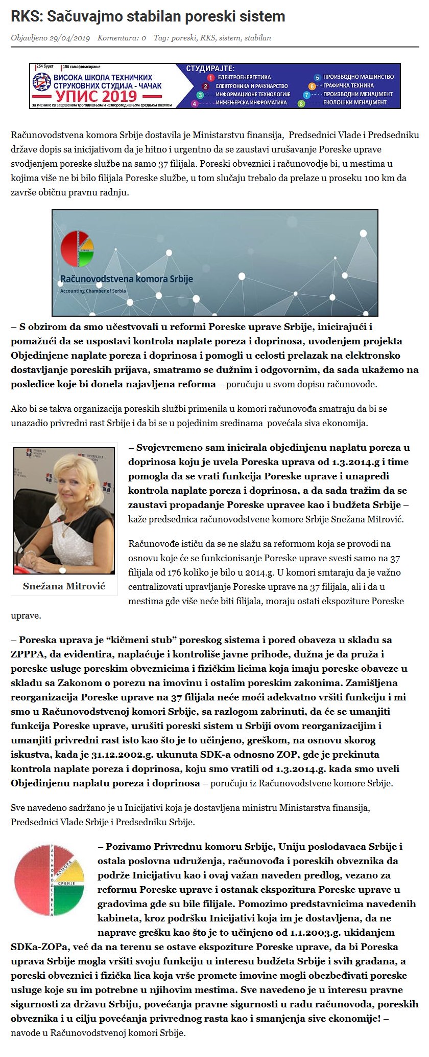 RKS: Sačuvajmo stabilan poreski sistem