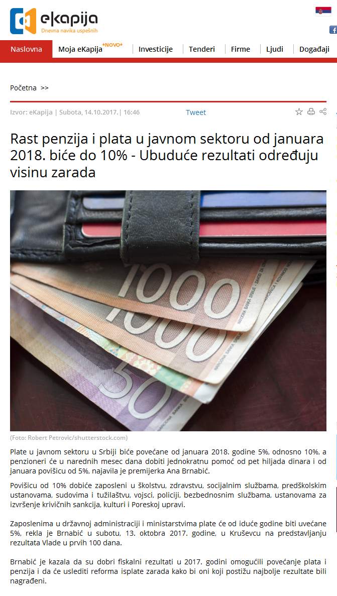 Povećanje (vraćanje) zarada zaposlenima i u Poreskoj upravi Srbije