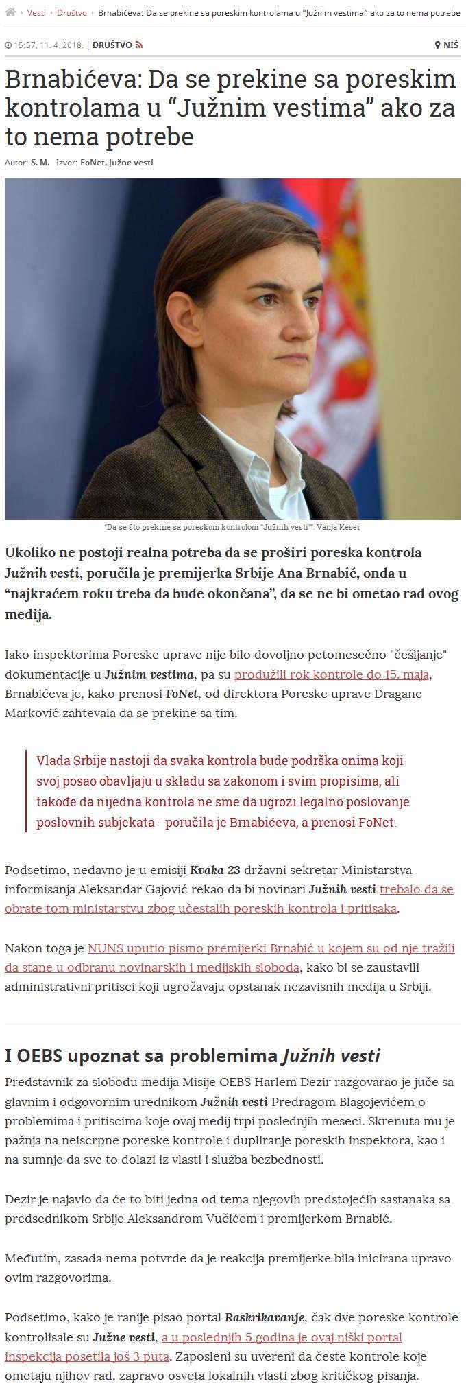 Da se prekine sa poreskim kontrolama u “Južnim vestima” ako za to nema potrebe