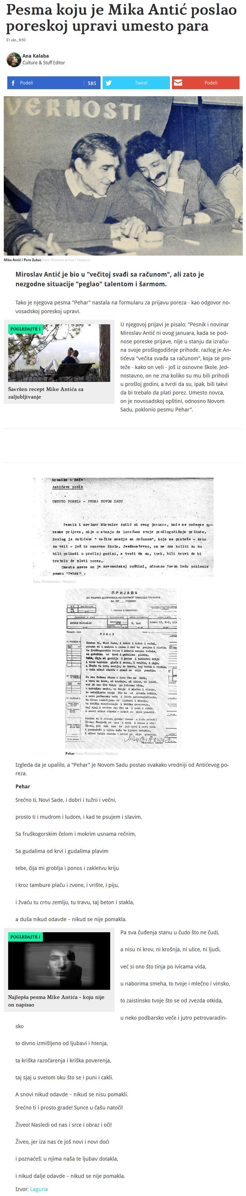 Pesma koju je Mika Antić poslao Poreskoj upravi umesto para