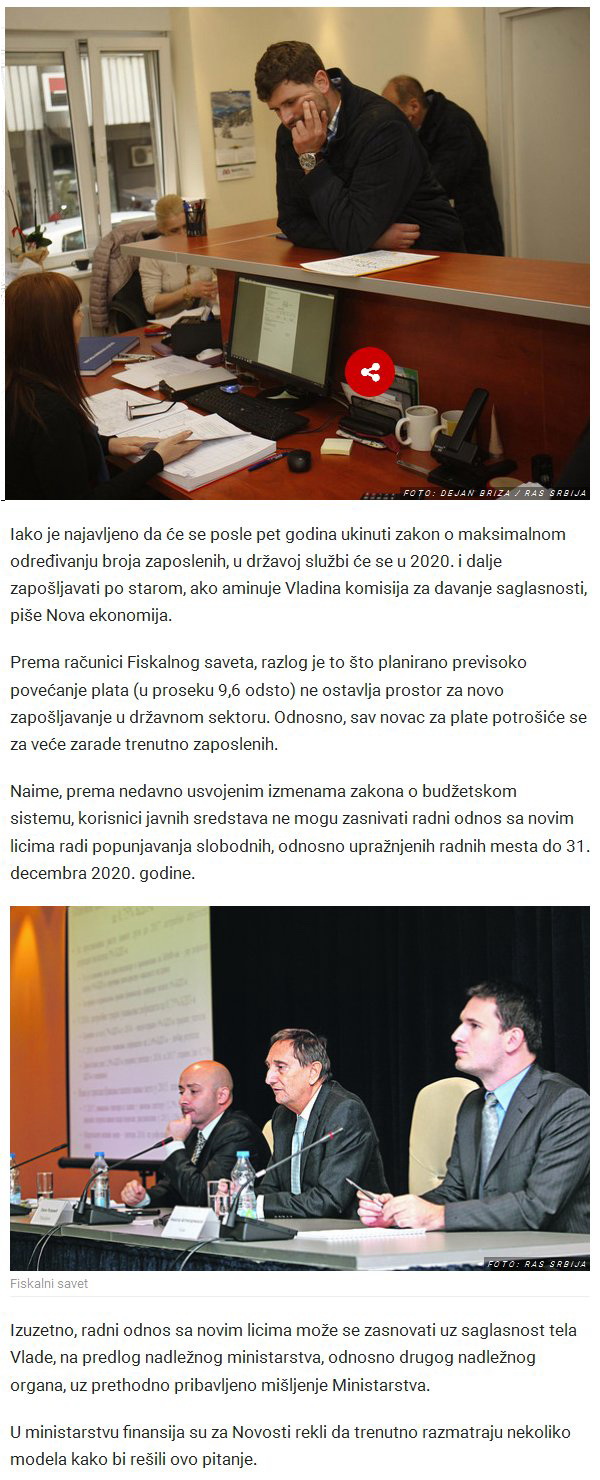 Povećanje plata PRODUŽILO ZABRANU zapošljavanja u državnom sektoru
