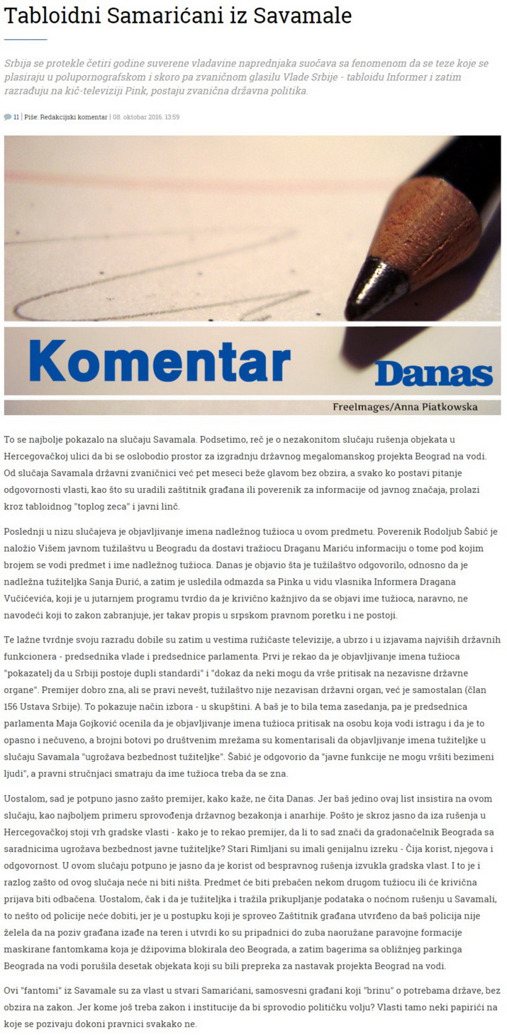 VAŽNO OBAVEŠTENJE