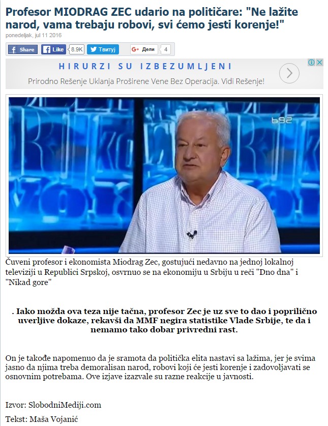 Ne lažite narod, vama trebaju robovi, svi ćemo jesti korenje