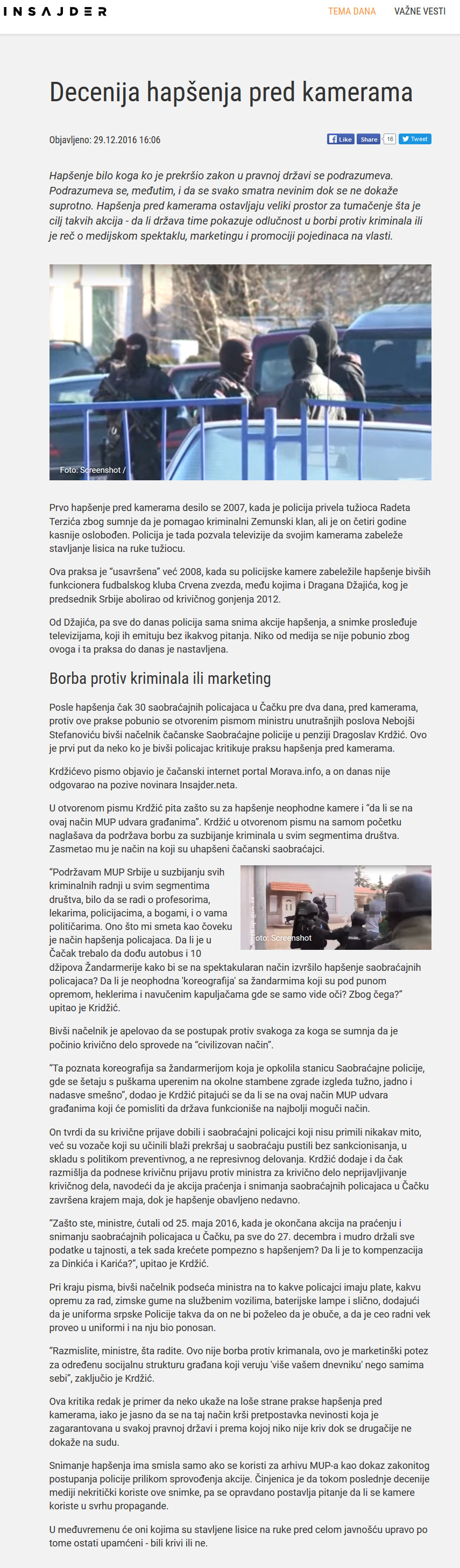 Decenija hapšenja pred /TV/ kamerama