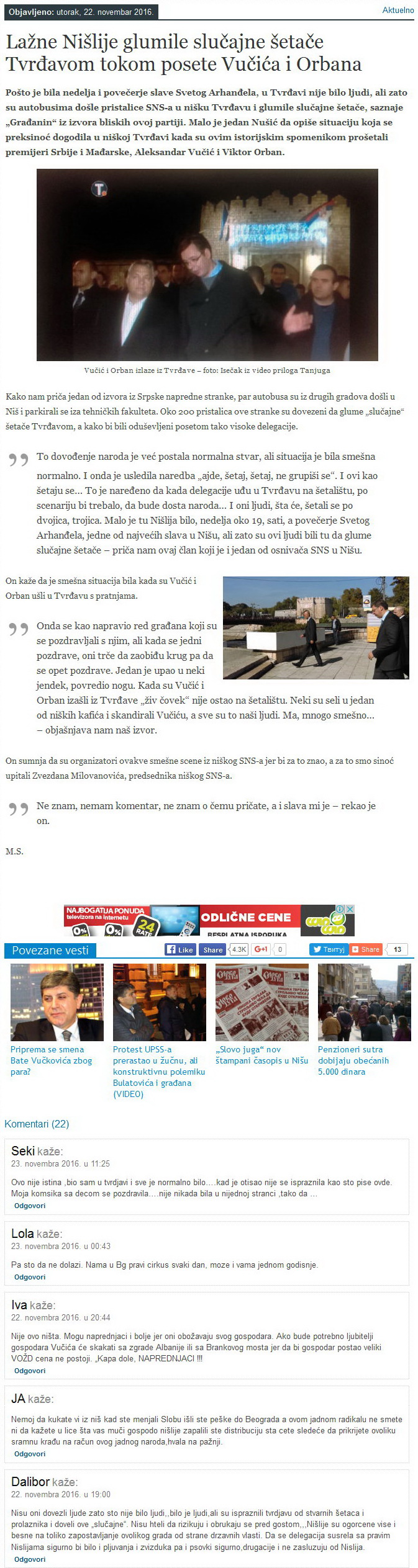 Šeta tako Orban niškom tvrđavom, kad mu priđoše građani