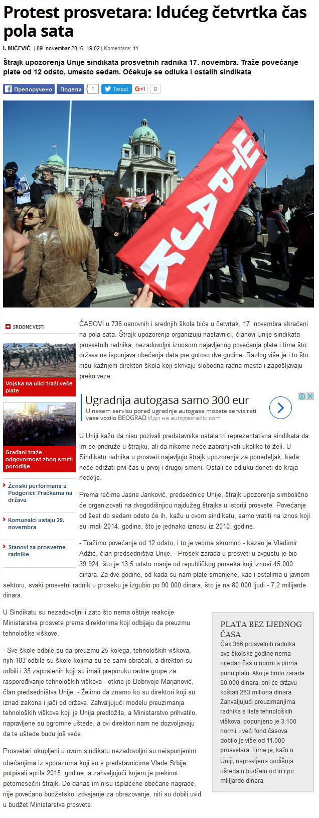 Sindikati prosvete i Vojske Srbije zakazali štrajkove za 17. i 27.11.2016. godine