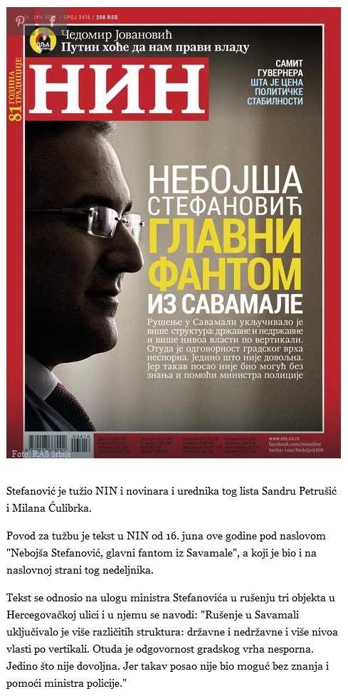Ministar Stefanović tužio NIN zbog Savamale