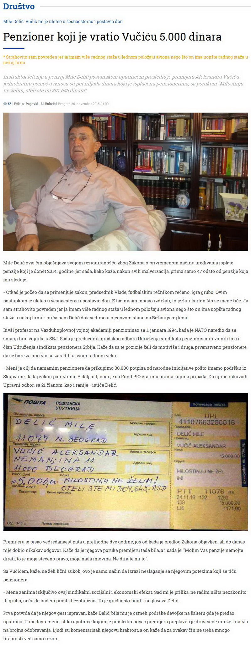Penzioner vratio "milostinju" premijeru Srbije