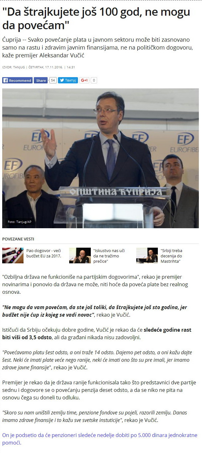 Vučić: I da hoću i da neću, ne mogu!
