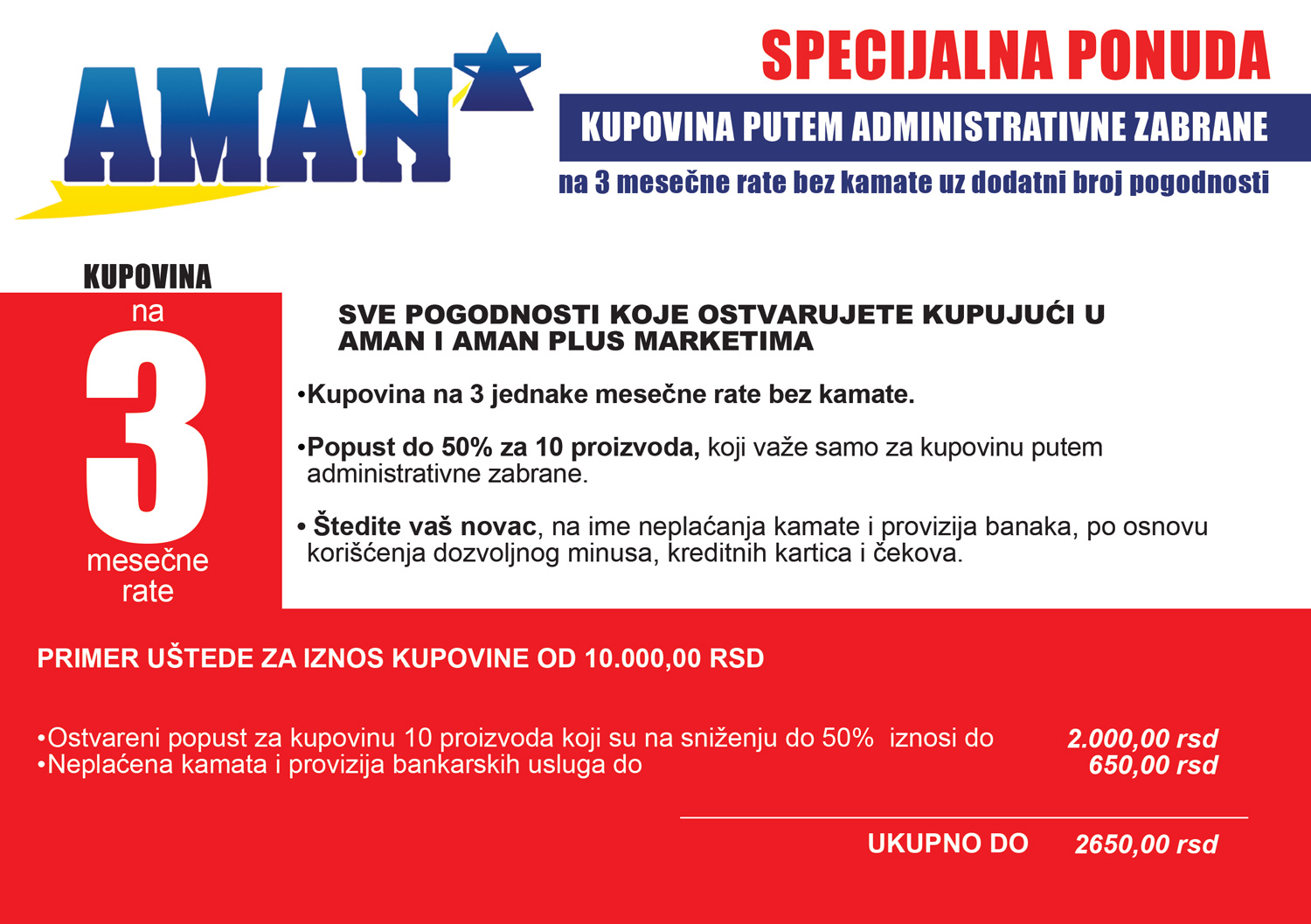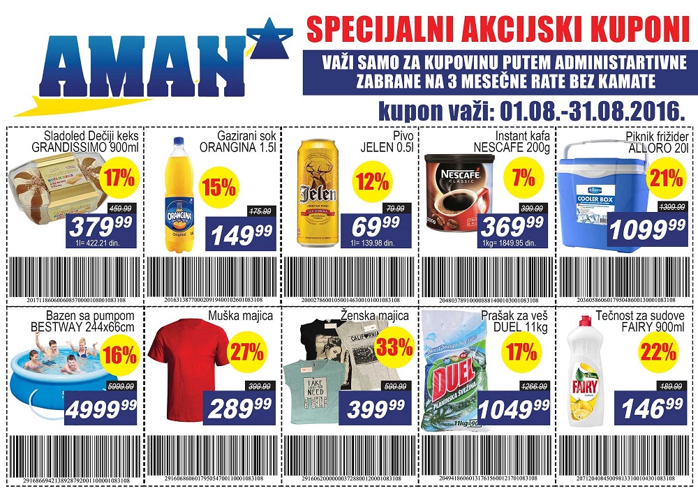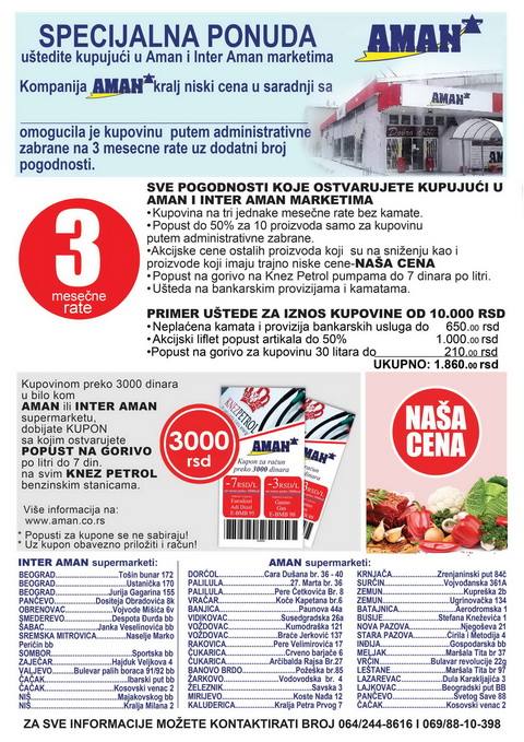 obaveštavamo vas da je u Beogradu,dana 28.04.2016. godine, zaključen ugovor o poslovnoj saradnji između Jedinstvene organizacije sindikata Poreske uprave Srbije, sa jedne i Aman d.o.o. Beograd i Midpoint Int, sa druge strane, o poslovnoj saradnji, a u vezi sa odobrenjem kupovine robe u maloprodajnim objektima Amana, putem administrativne zabrane na odloženo plaćanje u tri mesečne rate za zaposlene – članove JOS-a PU, pod jednakim uslovima u svim maloprodajnim objektima partnera, na čitavoj teritoriji Republike Srbije.