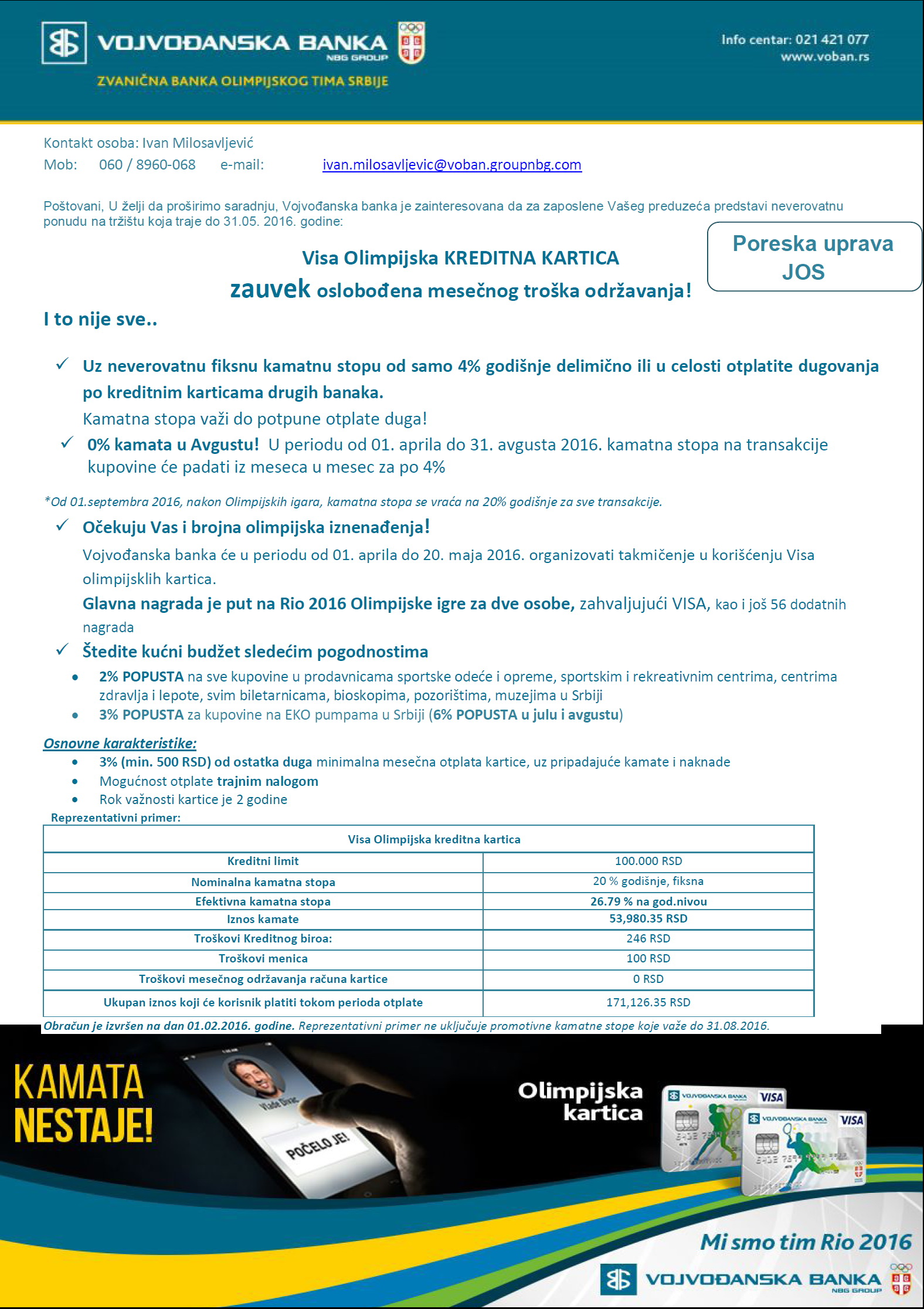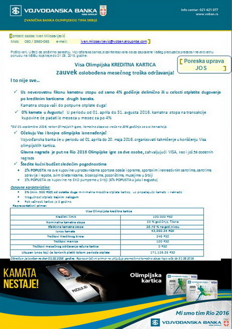 Vojvođanska banka će u periodu od 01. aprila do 20. maja 2016. organizovati takmičenje u korišćenju Visa olimpijsklih kartica.