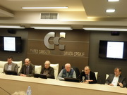Učesnici konferencije: predsednik Sindikata uprae Srbije, Njegoš Potežica, predsednik Jedinstvene organizacije Sindikata državnih organa, Vladan Jevajac, predsednik Jedinstvene organizacije Sindikata Poreske uprave Srbije, Milan Dumić i presednica Jedinstvene organizacije Sindikata Republičkog geodetskog zavoda, Mirjana Jovanović.