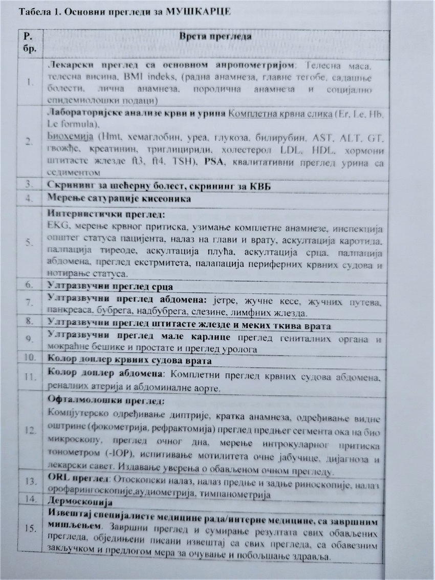 1. Vrstu pregleda prema polu zaposlenih;