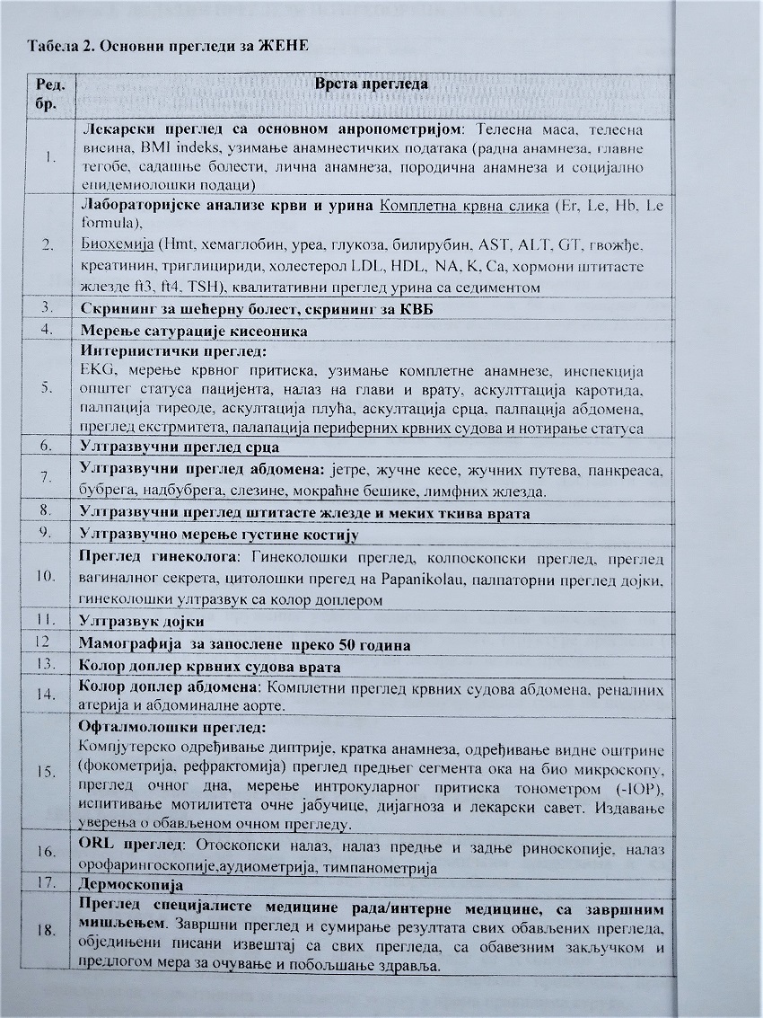 2. Plan za sprovođenje sistematskog pregleda (raspored i obim pregleda u skladu sa vrstom posla koji obavlja zaposleni – terenski ili kancalarijski rad).