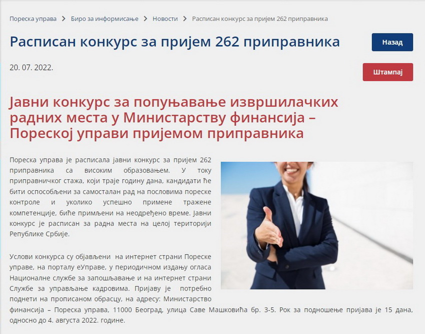 Takođe, Poreska uprava nije atraktivna ni kada raspišemo konkurs za prijem novih kadrova, pogotovu za beogradske filijale. Mladi ljudi, svršeni studenti koji imaju znanje i završili su fakultete sa visokim prosekom jednostavno ne žele da konkurišu zbog malih primanja i neizvesnosti oko napredovanja. Taj trend treba pod hitno promeniti.